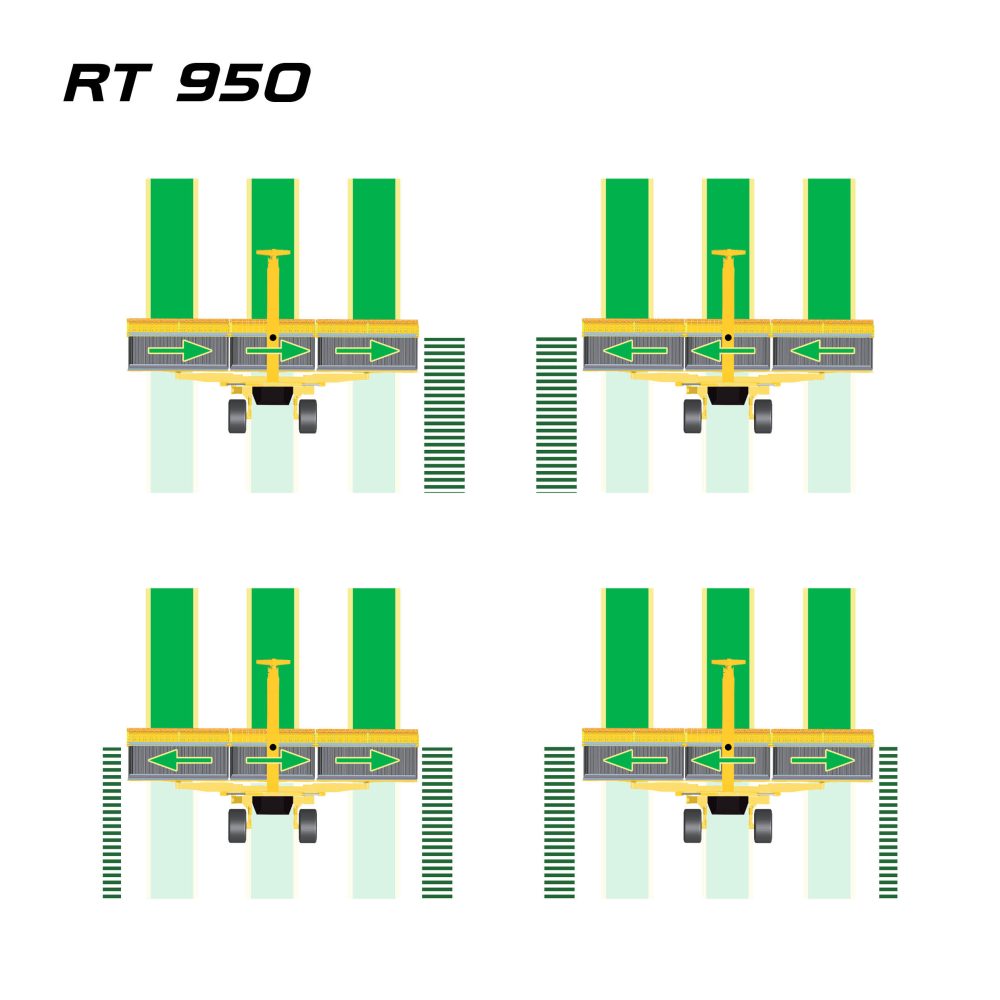 レーキ ROC RT 950 はレーキングの革命的コンセプトのシンボルでもあります。 主な違いは収穫のシステムです:通常のレーキングでは畑の上の作物をウィンドローまでひきずりますが、RT 950 は作物をレーキのコンベアーに乗せて運びます。この違いが生む利点とは: